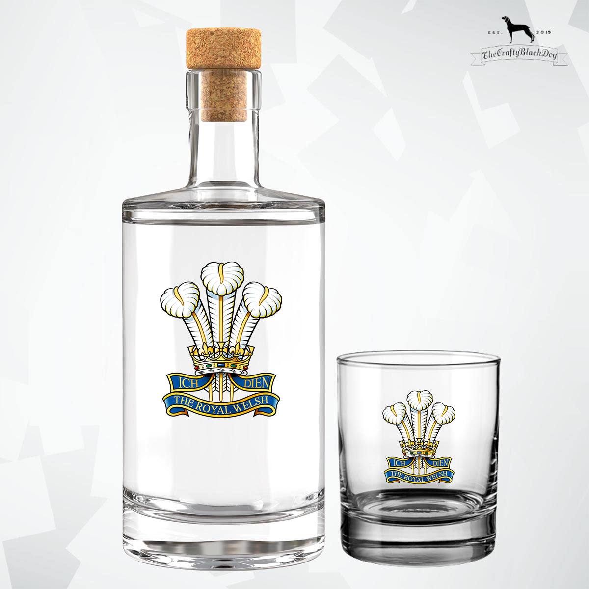 Are you tired of gifting the same old bottle of whiskey or gin to your loved ones? Why not add a touch of sophistication with this extra special gift? Purchase the empty bottle adorned with a Military Insignia and a matching tumbler, and then decant their favourite drink into the bottle for a truly personalised and unique present on their special day.